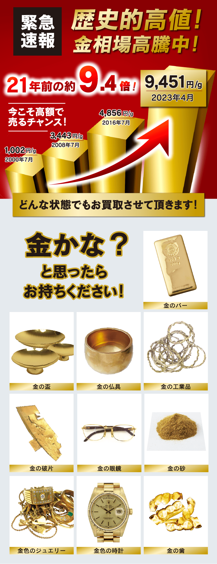 金の査定に関しましては、お客様がお品物を発送された日の相場がベースとなります。